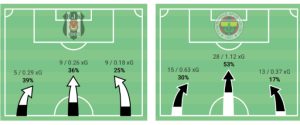 Zaten veriler de bunu doğruluyor: Beşiktaş’ın en yüksek xG üretimi sol kanattan geldi. Siyah-beyazlılar hücumlarını en çok bu bölgeden şekillendirdi.